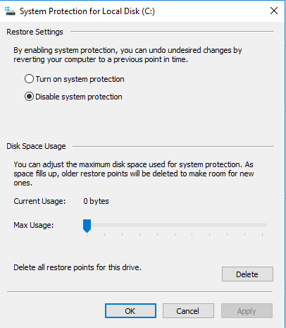 System Restore là chương trình tự động tạo các bản backup hệ thống nhằm cứu trợ cho hệ thống trong trường hợp bị lỗi hệ điều hành hoặc nhiễm virus quá nặng, tuy nhiên chương trình này sử dụng một dung lượng đáng kể của ổ cứng để tạo backup và ghi/xoá liên tục. Điều này làm giảm hiệu năng cũng như tuổi thọ của ổ SSD. Để vô hiệu hoá chức năng này, có thể thực hiện các bước như sau: